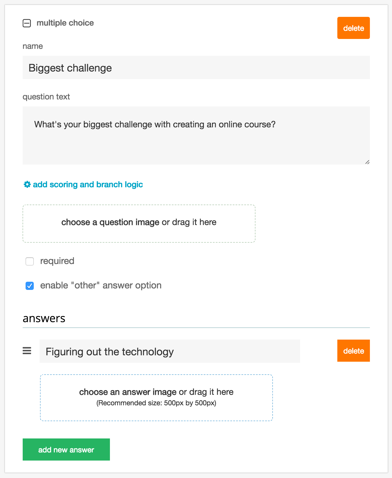 One of the question types that you can add to your survey is an optin form, which automatically includes a name and email field.